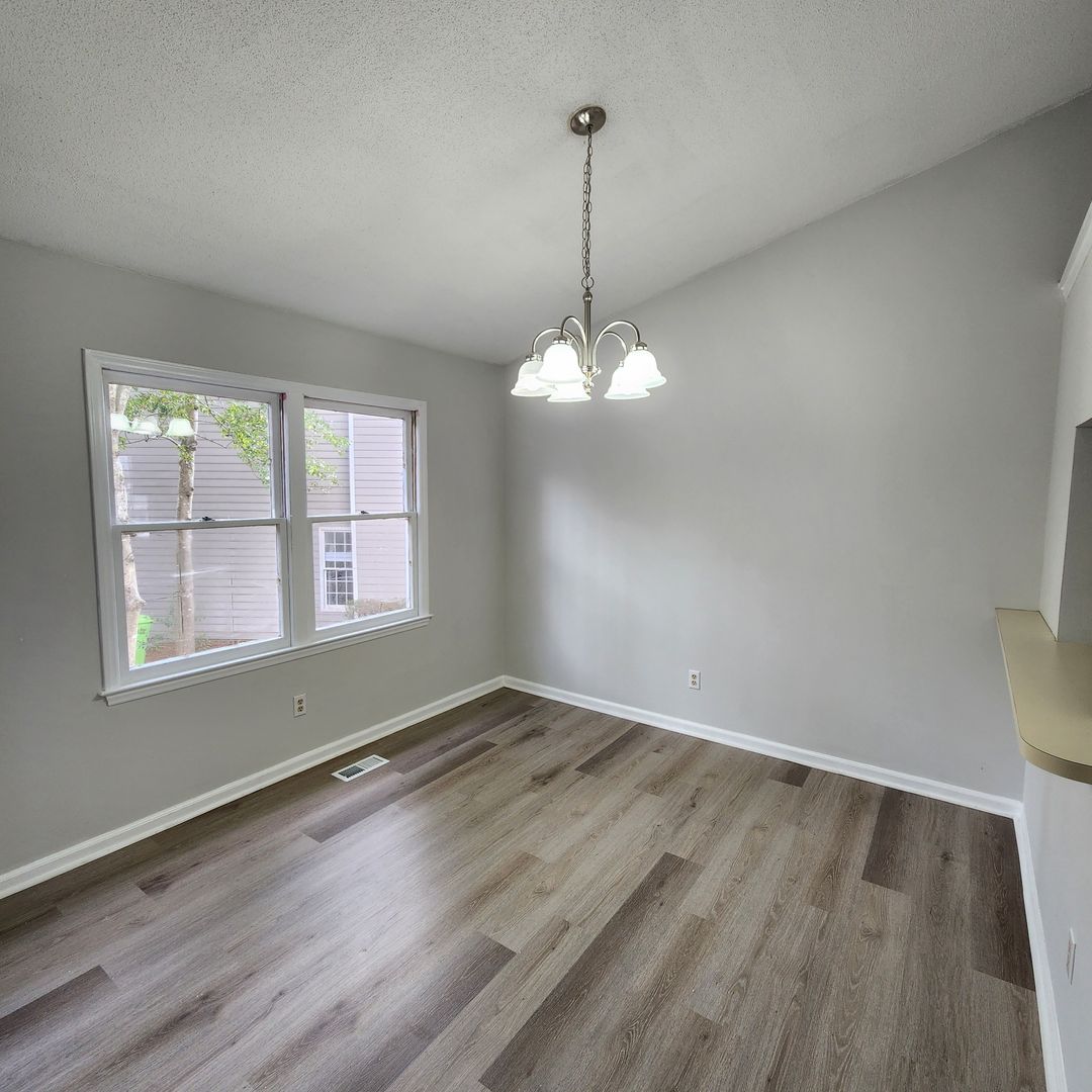 Welcome to this stunning 3 Bedroom Townhome For Rent, located in the vibrant city of Raleigh, NC. This one-story ranch-style townhouse boasts three spacious bedrooms and two full bathrooms with new vanity, shower and toilets. offering ample space for comfortable living. The home features new LVP flooring throughout, adding a touch of modern elegance to the overall aesthetic. The living area is enhanced by a wood-burning fireplace, perfect for cozy evenings, and a wet bar, ideal for entertaining guests. The property also includes washer and dryer hook-ups for your convenience. Step outside to the back deck, a perfect spot for outdoor relaxation or dining. This townhome combines style, comfort, and practicality, making it a perfect choice for those seeking a high-quality living experience in Raleigh.